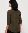 Superdry Conversational-skjorte for kvinner. Enkel og chic - denne skjorten er et basisplagg du bare må ha i garderoben din denne sesongen. Bruk skjorten stappet ned i et par jeans eller sammen med chinos for en spesiell anledning. Skjorten er av button down-typen med mansjettknapper, en enkel krage og to brystlommer. Som en utfyllende avslutning er skjorten dekorert med et Superdry-emblem på lommen.