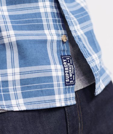 Superdry Merchant Milled Lite-skjorte med lange ermer for menn. Lett skjorte i klassisk stil med lange ermer, knapping, knapper i kragespissene, to brystlommer med knappelukking og knapper i mansjettene. Dekorert med en Superdry-logolapp på knappestolpen samt en på den ene lommen. Vil se flott ut alene eller lagvis over en enkel T-skjorte.