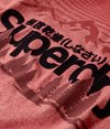 • Trykket grafisk design med Superdry-logo i flokk